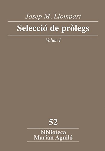 Josep M. Llompart. Selecció de pròlegs: Selecció De Pròlegs - Volum I: 1 (Biblioteca Marian Aguiló) ... how to Josep M. Llompart. Selecció de pròlegs: Selecció De Pròlegs - Volum I: 1 (Biblioteca Marian Aguiló), excellent guide even for writers! i like this book for a number of reasons the author immediately addresses the ...