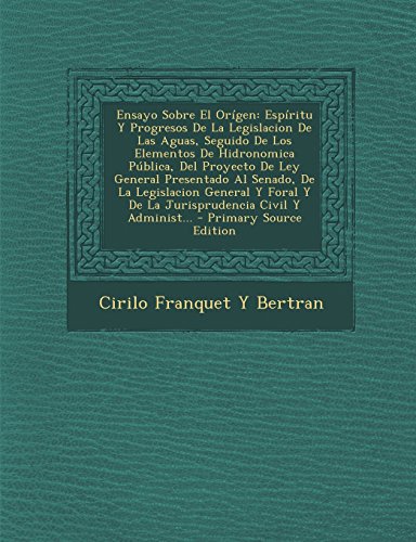Come visit our website, then get this book Read Ensayo Sobre El Origen: Espiritu y Progresos de La Legislacion de Las Aguas, Seguido de Los Elementos de Hidronomica Publica, del Proyecto de Ley ... Civil y Administ... - Primary Source Edition PDF soon.